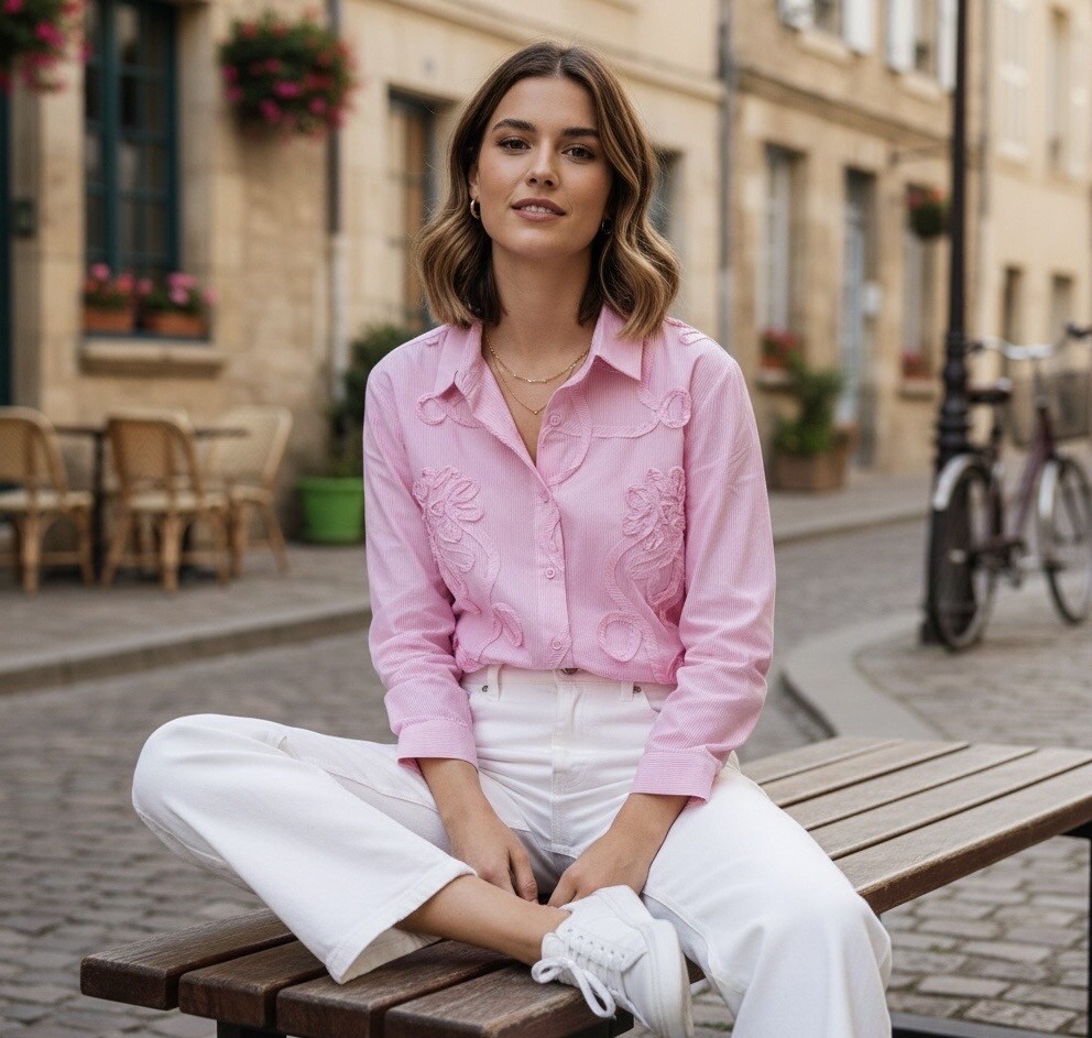 Bloese met fantasie stiksel, ideaal om te combineren met een geklede broek, jeans, rok.....